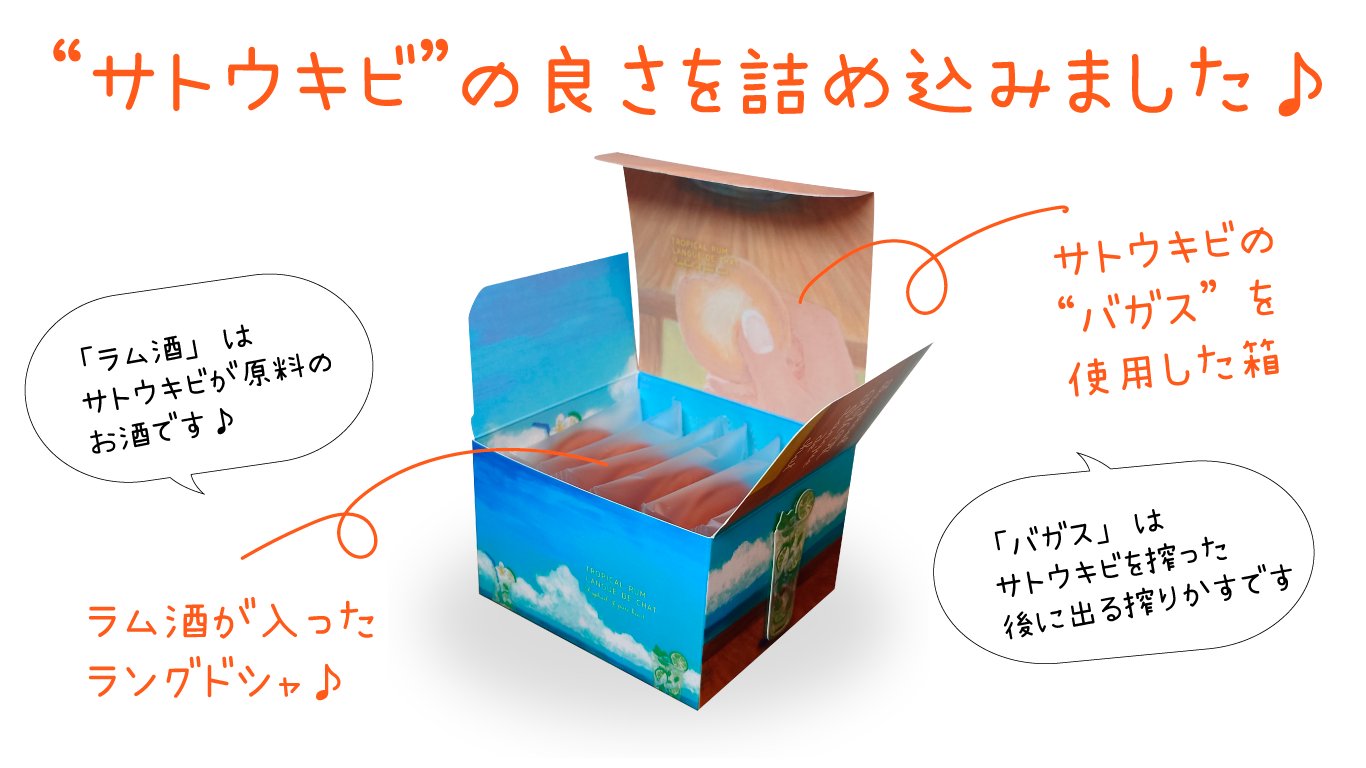 パッケージには、サトウキビの搾りかす「バガス」から作られた紙を使用しています。宮古島で出会った風景を切り取ったような美しい絵が描かれており、まるで旅の思い出を閉じ込めたかのよう。南国の美しい自然を守る心を込めた、お土産にぴったりなパッケージです。